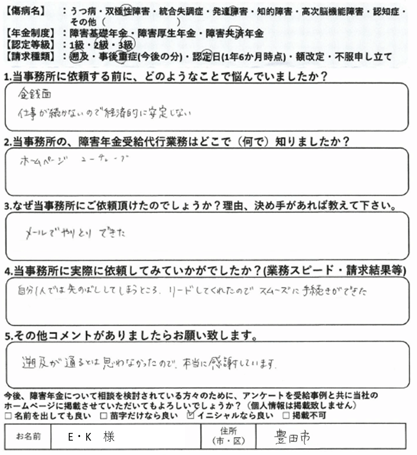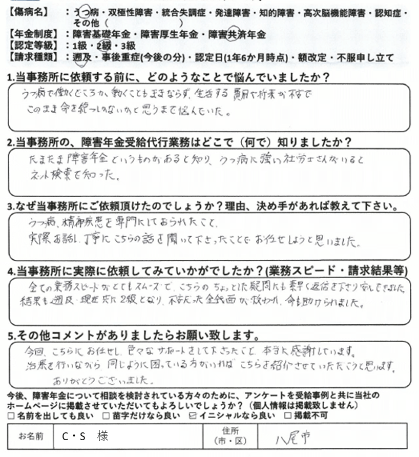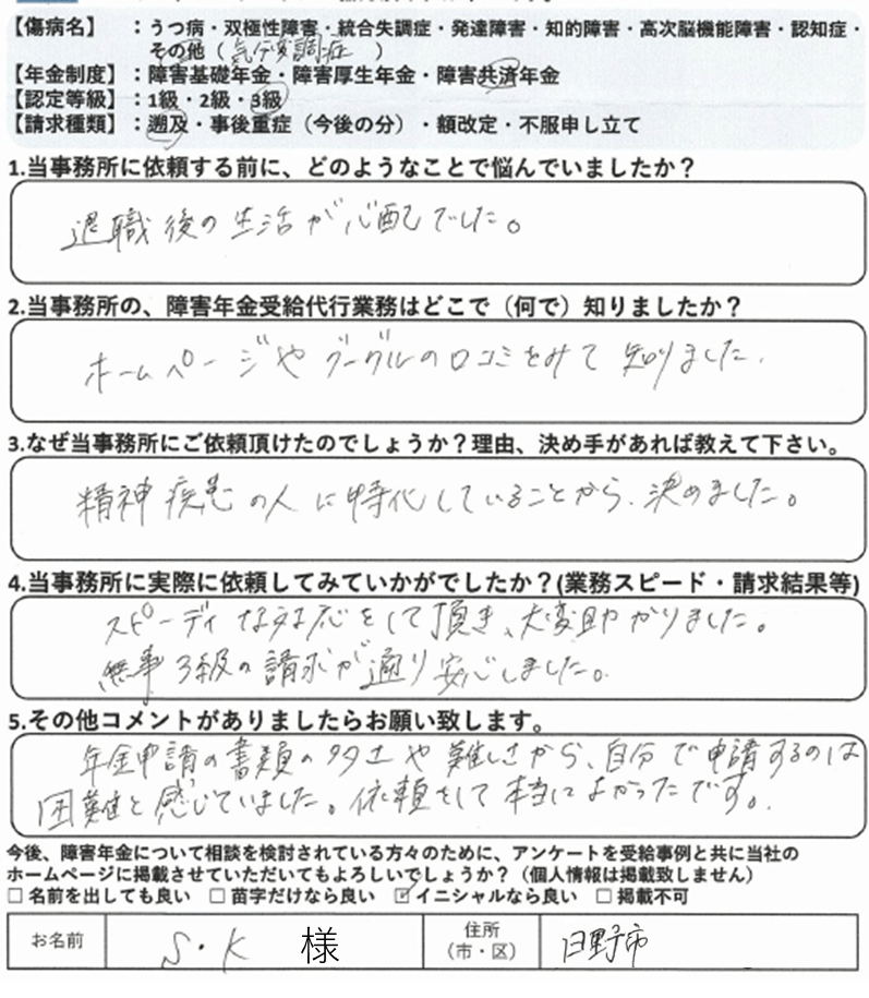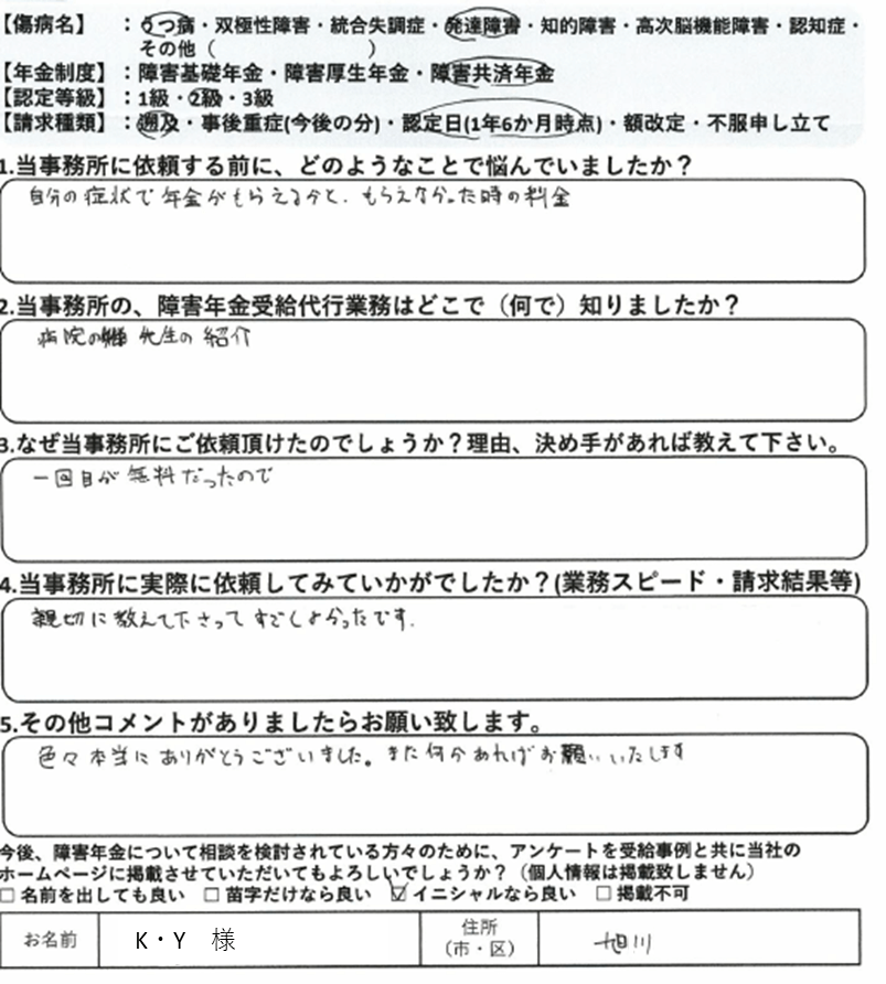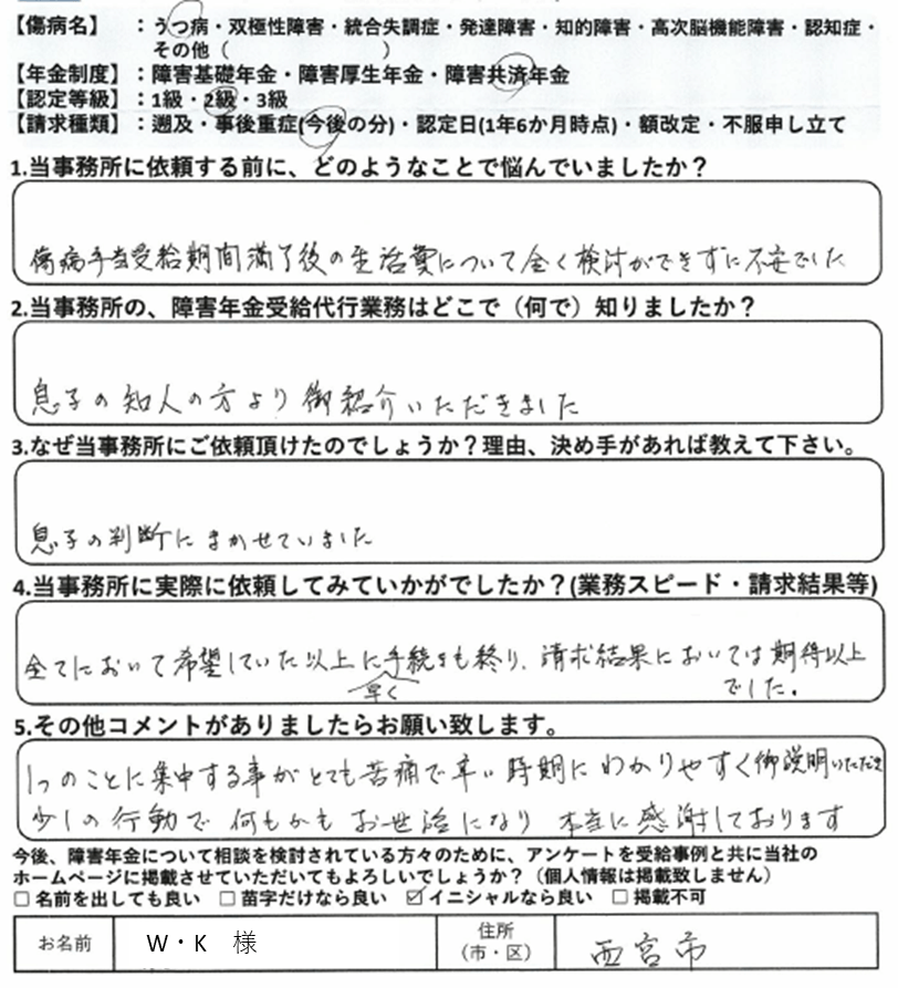 初回の請求をご自身で行って不支給となった場合、審査請求や再審査請求で覆すのは非常にハードルが上がります。これは初回の請求時に提出した診断書や病歴・就労状況等申立書の記載は、その後の審査請求でも永遠についてまわる為です。当事務所では納得いかない結果については審査請求についても積極的に対応しておりますが、審査請求にもつれ込まず、初回の請求で認定されるに越したことはありません。