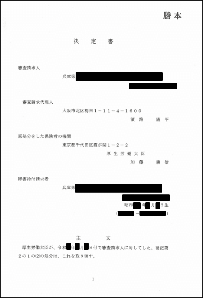 ↑初回の請求に対する厚生労働大臣の決定が誤っており、それを「審査請求」で正したことを表しています。