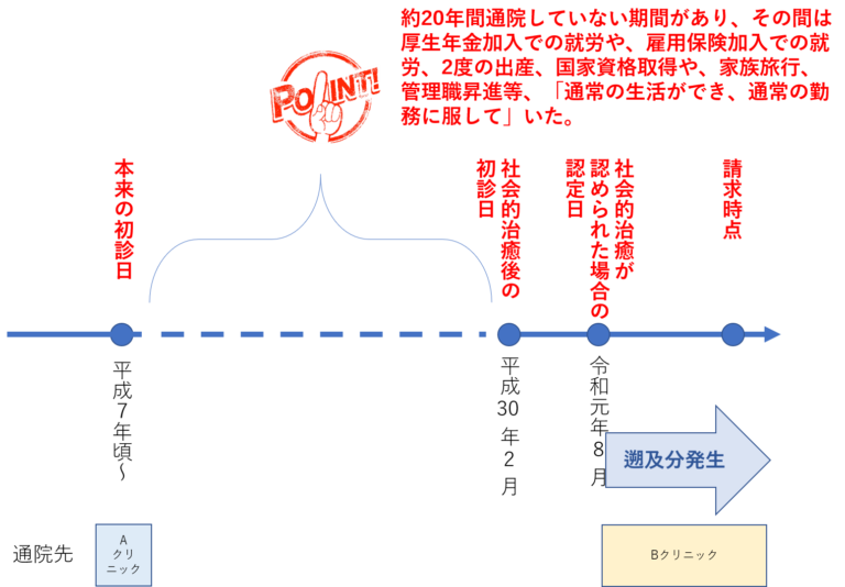 前回の受診から20年以上経過しておりましたので、社会的治癒の期間としては充分であると考えました。(4年前後でも認められるケースがあります。)
